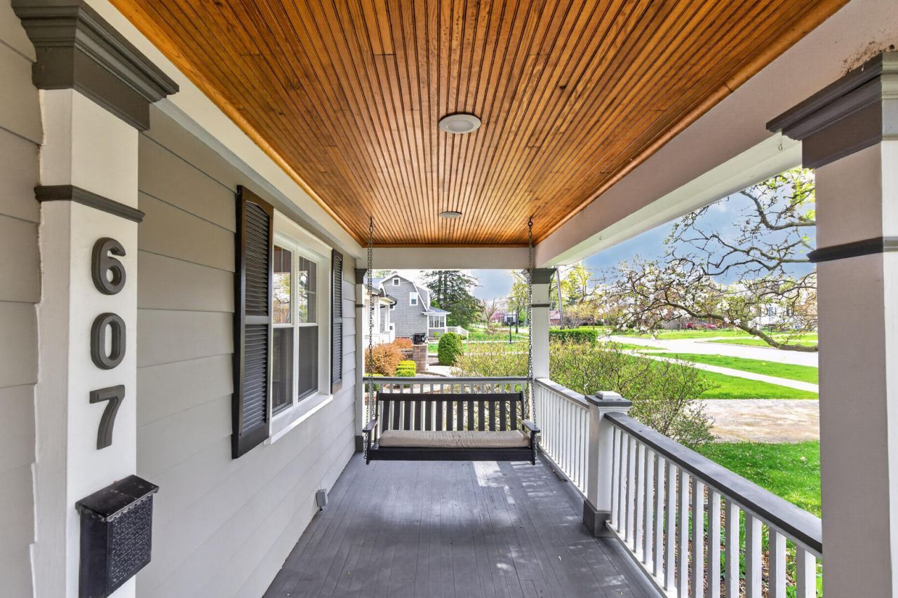 Welcome Home! Spend your summer days on the idyllic covered front porch or the expansive back deck at this in-town home... just over 1/2 mile to downtown Wheaton and the French Market! This residence is truly a 'move-in ready' experience with extensive updates and maintenance. A few of the highlights include three renovated bathrooms, a contemporary kitchen, updated basement, many new light fixtures, and modern paint colors. At the front of the home, the large living and dining rooms feature crown molding, built-in shelving and gas fireplace. The updated kitchen has Shaker cabinets, granite counters and slate gray stainless steel appliances. There is generous seating for meals in the breakfast room, dining room and at the casual breakfast bar. A spacious family room opens to a back deck and fenced in yard, and French doors provide privacy to the first floor office or playroom. On the second level, the primary bedroom has an elegant ensuite bath with walk-in shower, dual sink vanity and luxurious finishes, in addition to a 7x9 walk-in closet with a window. The three additional bedrooms enjoy generous room sizes and closet storage along with the beautifully renovated hall bath. Your living space extends to the finished basement, which includes a large rec room with 1/2 bath and a playroom with a closet. The basement also includes a laundry area and an additional space that could function as an exercise room or workshop. An insulated full attic provides additional storage space. Back outside, the picturesque yard is spacious and ready for recreation, relaxation and entertaining. In addition to the walkable location near downtown Wheaton you are close to parks, bike trails, train stations, the public library, and a wealth of area amenities and entertainment. 607 E Evergreen St, Wheaton, IL 60187